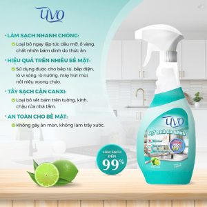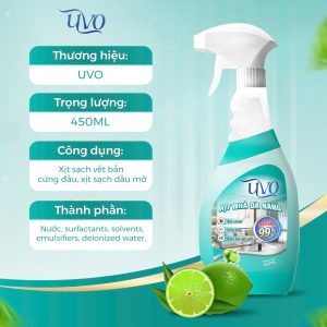 Xịt nhà đa năng UVO là sản phẩm thế hệ mới chuyên dùng tẩy rửa dầu mỡ tối ưu nhất trên thị trường.
